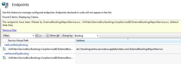 We can check that the endpoints are configured from the config file correctly in IIS AppFabric: