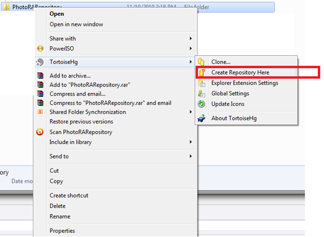 We will then right click the folder and select Create Repository: