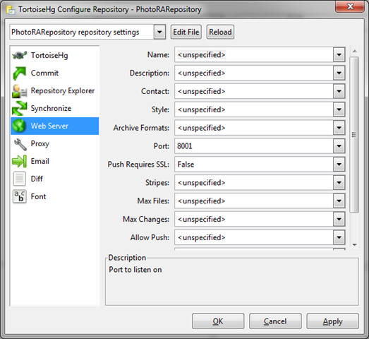 I went an updated the web.config file in my clone repository using Visual Studio. Now I right click the clone folder and commit.
