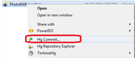 Next I right click my clone folder and select repository explorer and I see the history, I can now PUSH it up to the main repository.