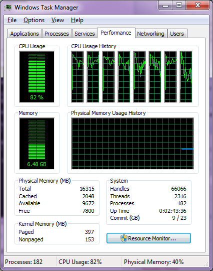 After running for +- 50 minutes, the system ran out of memory (dispite the machine having over 8gb of free memory!)