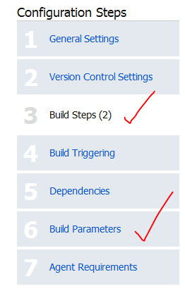 The above screenshot is the command that executes the powershell script, the parameters (%whatever%) will resolve from Build parameters in Step 6 of the screen shot above.